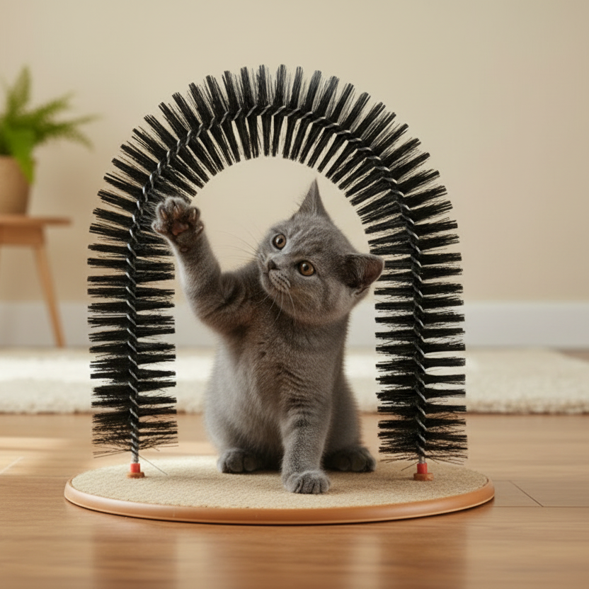 Combine play and grooming in one elegant solution with the ALEF Feline Fun & Groom Arch. This multifunctional design merges interactive entertainment with self-grooming functionality, allowing cats to scratch, groom, and play simultaneously. Constructed from durable plastic and premium carpet material, the arch measures 35 x 28 x 35 cm with a stable 36 x 28.5 cm base, accommodating cats of all ages. The textured surface encourages natural scratching behaviors while reducing shedding and supporting coat health. Ideal for any indoor space, this grooming arch transforms routine play into a comprehensive wellness experience for your feline companion.