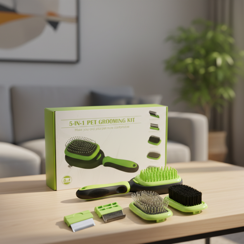 Keep your dog or cat looking their best with the ALEF™ Pet Grooming Brush Set. This comprehensive collection features specialized tools that effectively remove loose fur, untangle mats, and maintain coat health across all hair lengths. The de-shedding technology minimizes household fur while the ergonomic handles make grooming comfortable for both you and your pet. Regular use stimulates natural oils and blood flow, resulting in a healthier, shinier coat. Perfect for multi-pet households, this versatile set transforms grooming into an effortless, stress-free routine.